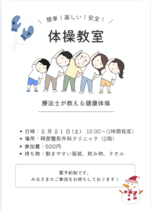 2月も、阿部整形外科クリニックにて体操教室を行います!