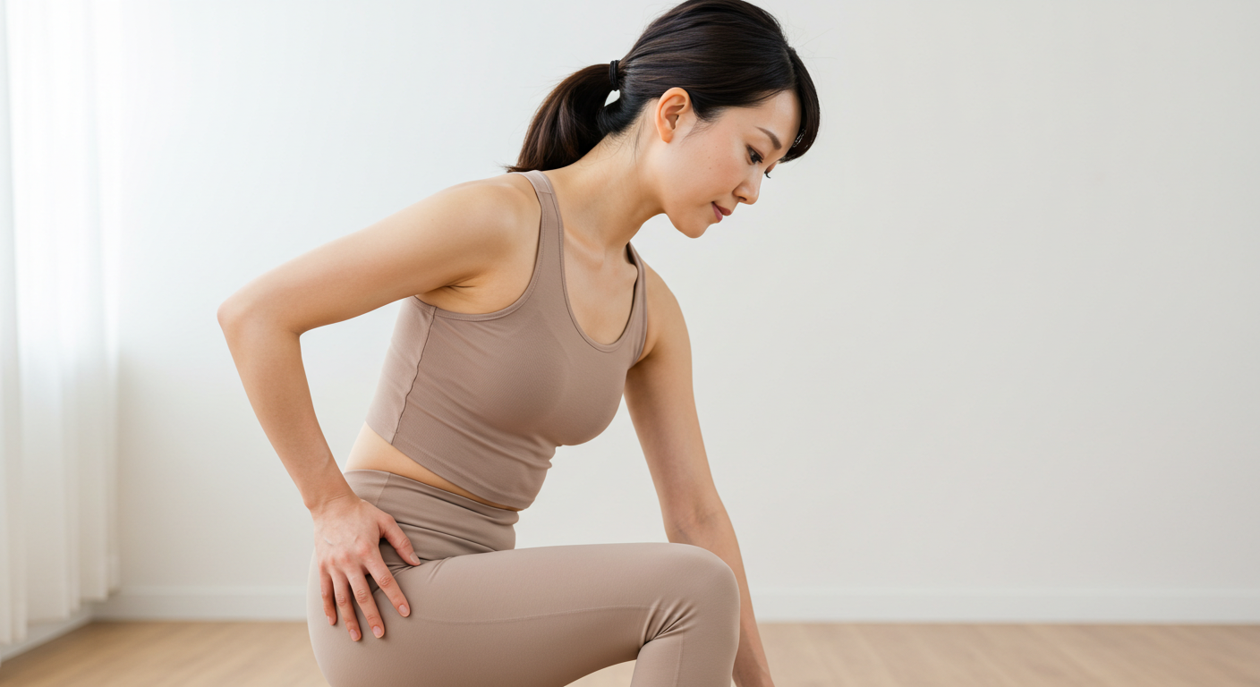 股関節前面(腸腰筋)と側面(中臀筋)を中心にストレッチを行うことで、可動域が広がり、詰まり感が改善されやすくなります。