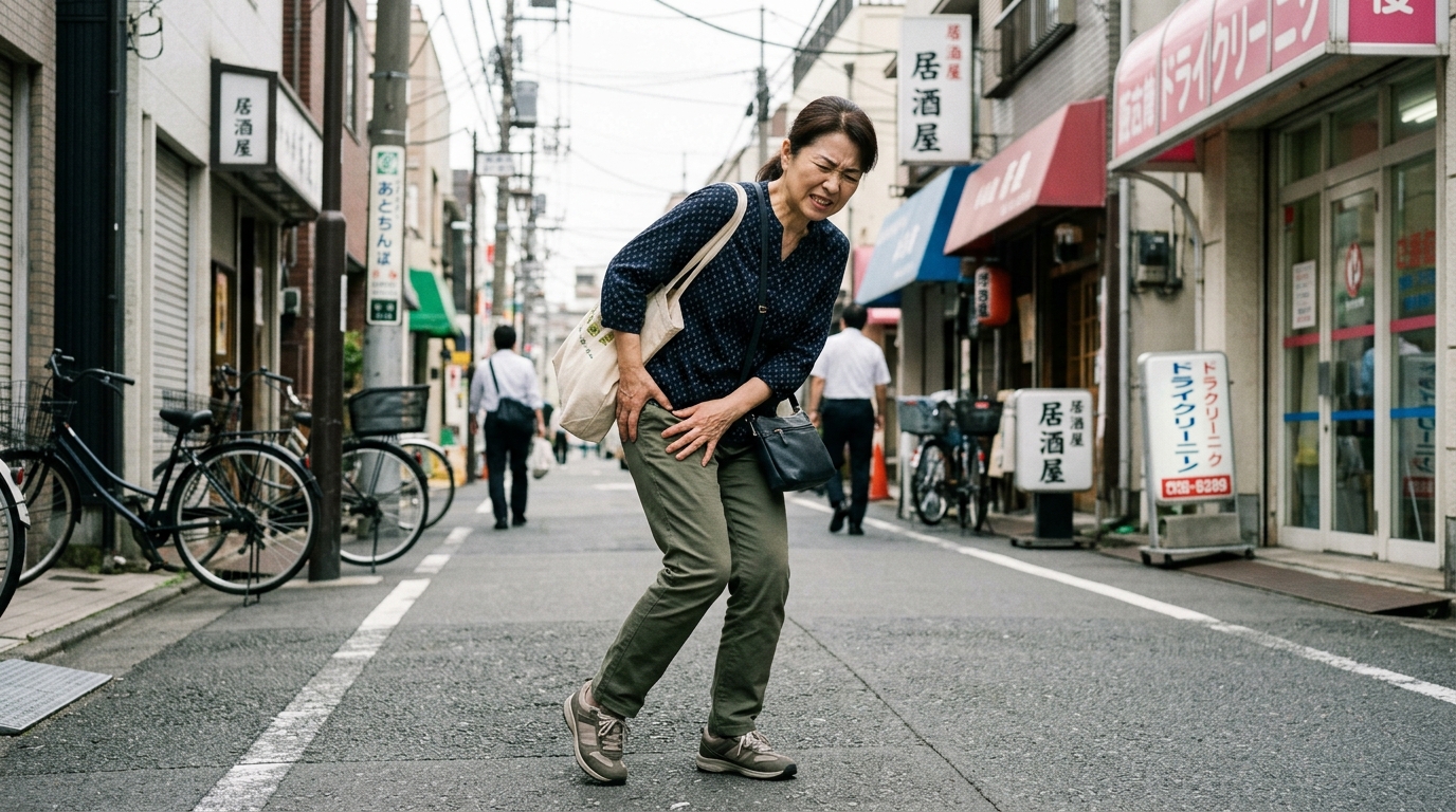 歩いた後、股関節の奥には軽い熱(炎症)が生じます。痛みがなくても、帰宅後は氷のうで10分ほど股関節の付け根を冷やしてください。これが翌日に痛みを持ち越さない最強のセルフケアです。
