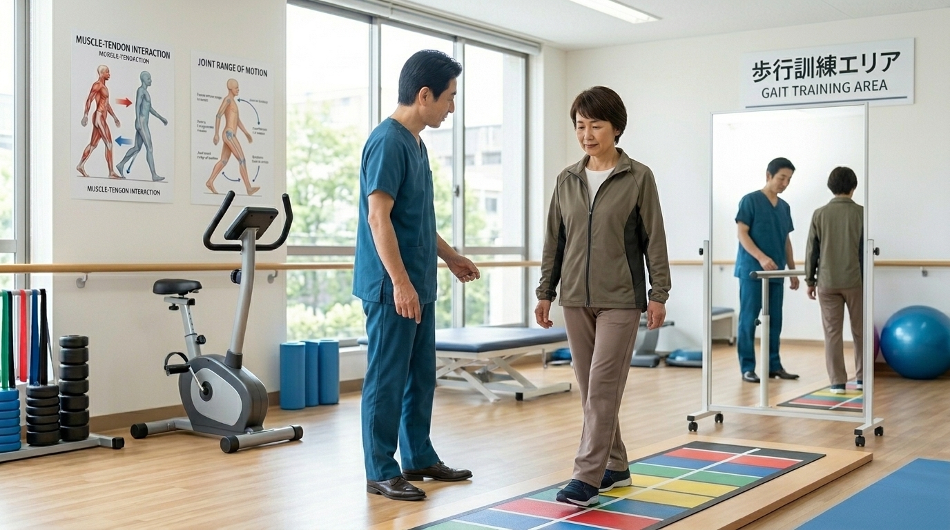 痛みの原因は、実は股関節そのものではなく、「足首の硬さ」や「お尻の筋肉のサボり」にあることが非常に多いのです。当院のリハビリスタッフが、あなたの歩く姿勢を分析し、どこに負担がかかっているのかを見つけ出します。あなたが不安なく5000歩を達成できるよう、徹底的に伴走します。