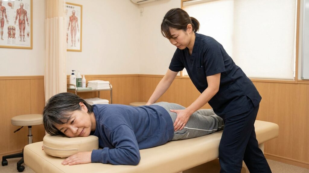 彼らはマッサージ屋さんではありません。「可動域を〇度広げる」「左右の筋力差をなくす」という明確な数値目標のもと、痛みの本当の原因である「硬くなった別の筋肉」を優しく緩め、股関節を正しく動かせるように身体の使い方を再学習させます。痛いところをグリグリ揉まなくても、驚くほど身体は軽くなるのです。