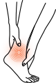 足関節捻挫では、外くるぶし前や下の痛み・腫れ・圧痛(押すと痛み)の症状がみられます。